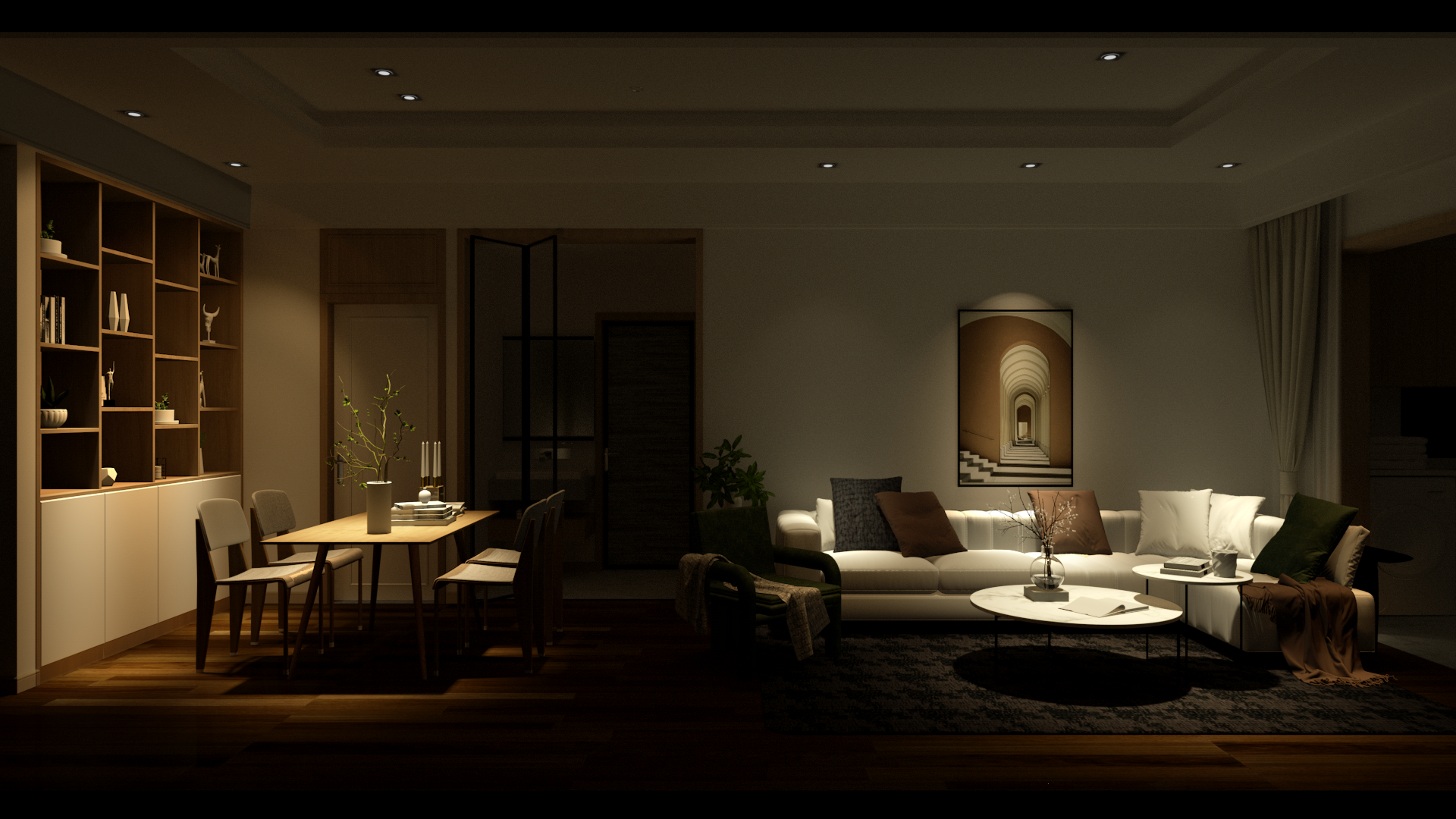 多方位局部照明形成空间的明暗对比,丰富光影的层次感。